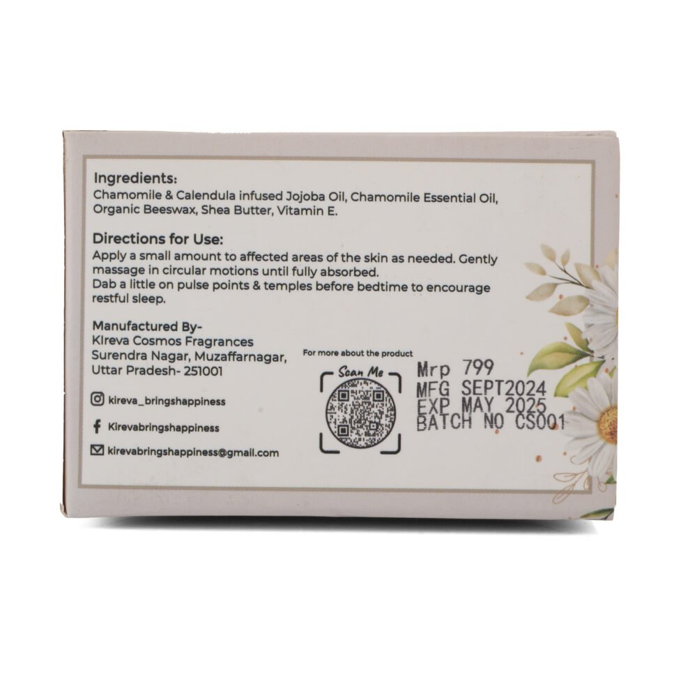 Experience the gentle touch of nature with Chamomile Grace, your go-to salve for holistic skin care & a comprehensive approach to emotional well being. This all-natural formulation is free from preservatives and rich in the healing properties of chamomile & Calendula, known for its ability to calm both the body and mind. Let Chamomile Grace be your daily companion for nurturing your skin and promoting tranquility .